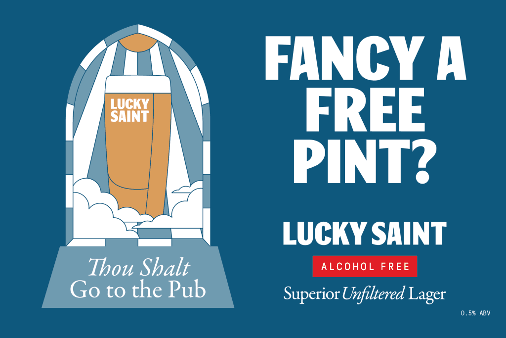 Go to luckysaint.co to claim your free pint of Lucky Saint draught, redeemable at The Quill & Scholar in Lichfield.