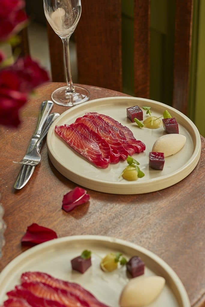 Starter: Beetroot cured Chalkstream Trout